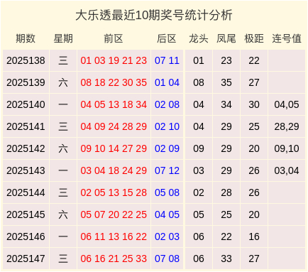 第2025148期大乐透数据统计分析